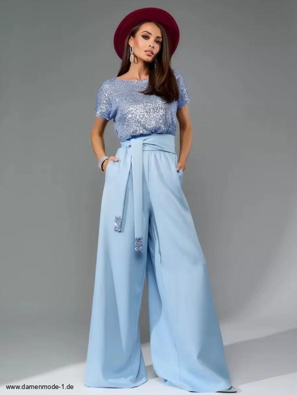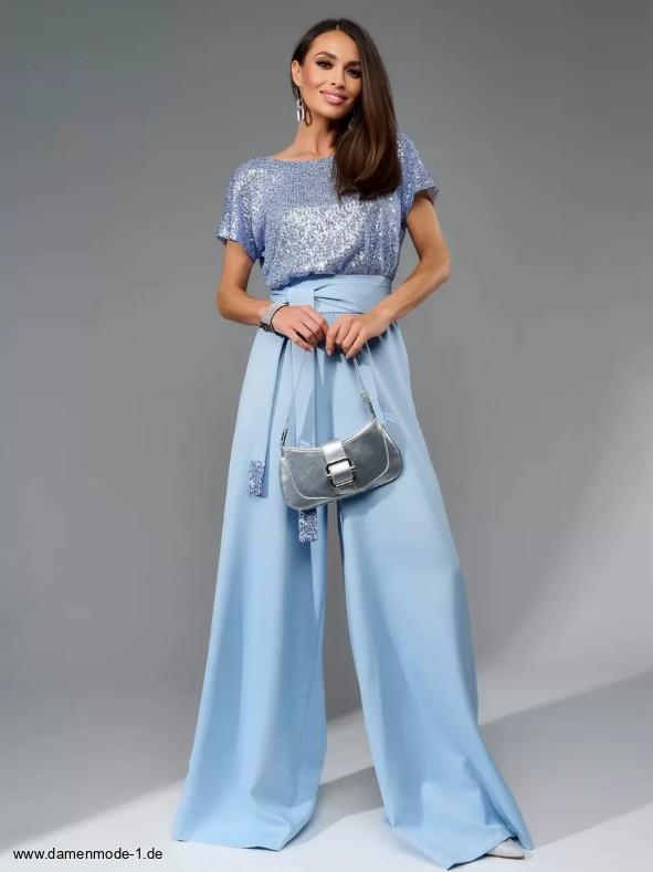 Einführung » Neuheiten 2026 » A Linie Einteiler Jumpsuit Gaby mit Glitzer Oberteil in Hellblau Elegant und Festlich