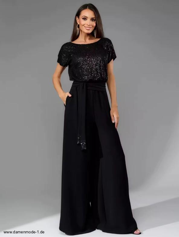 Einführung » Neuheiten 2026 » A Linie Einteiler Jumpsuit Gaby mit Glitzer Oberteil in Schwarz Elegant und Festlich