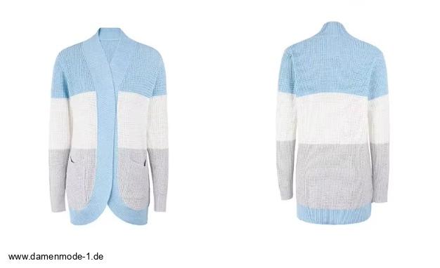 Damen Cardigan Strickjacke Ester mit Kontrastfarben Blau
