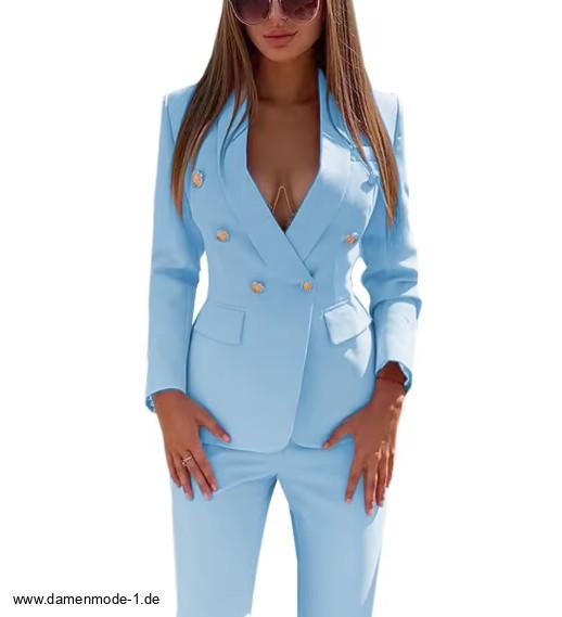 Einführung » Neuheiten 2026 » Damen Hosenanzug Frida mit Goldenen Knöpfen in Hellblau