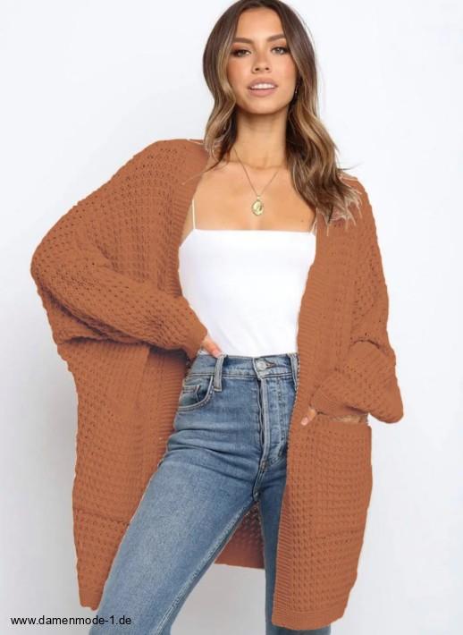Einführung » Neuheiten 2025 » Damen Strickjacke Eyleen mit Taschen in Braun