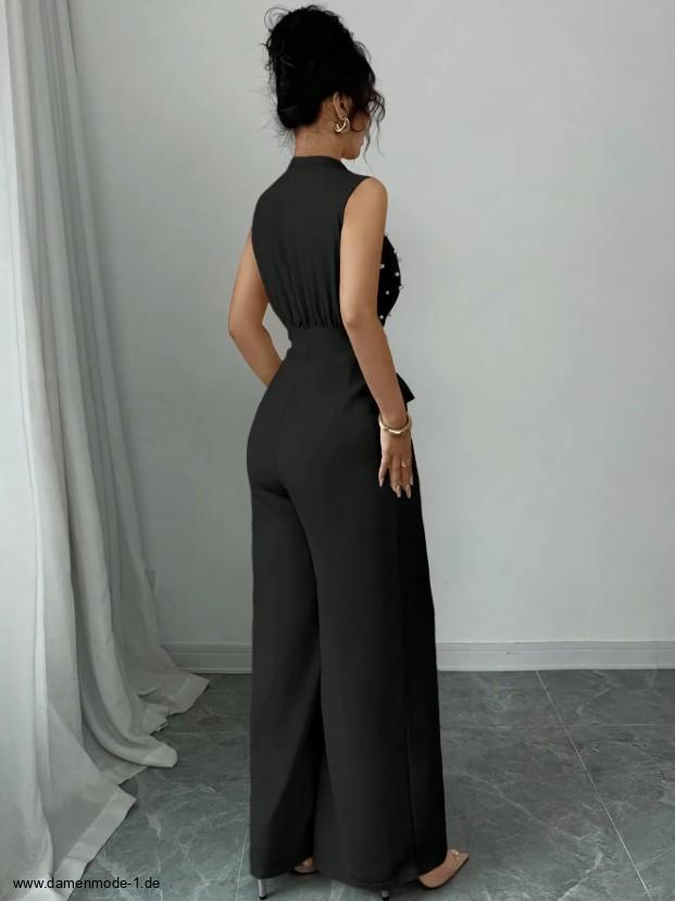 Eleganter Einteiler Jumpsuit in Schwarz mit Perlen
