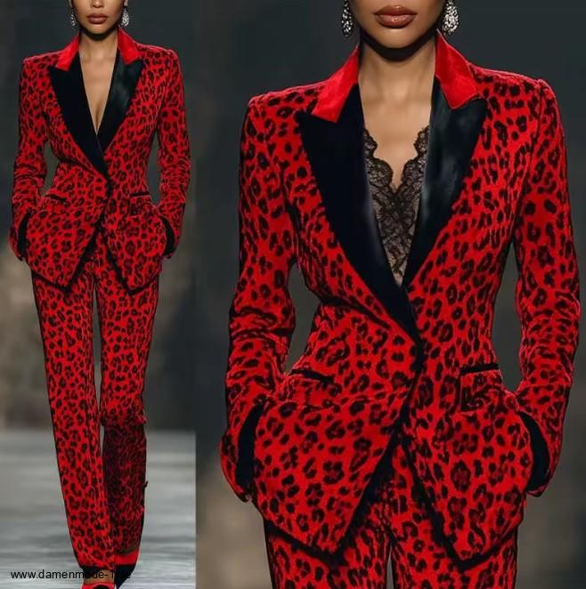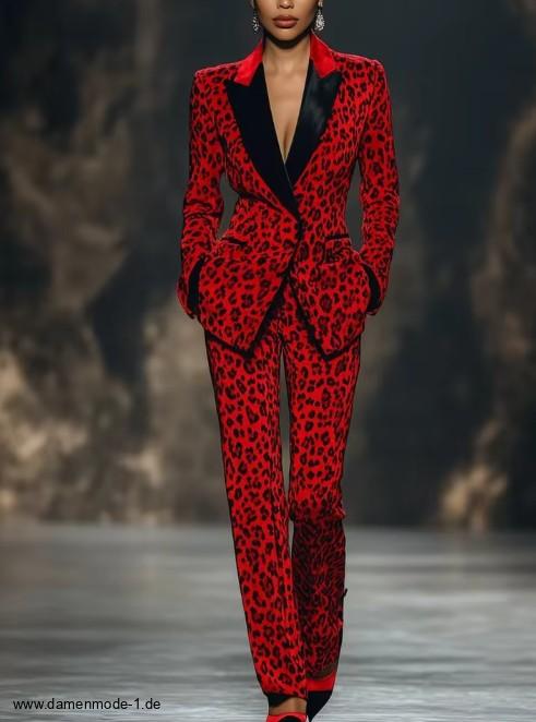 Einführung » Neuheiten 2026 » Eleganter Hosenanzug Friedegard in Rot Schwarz mit Leoparden Muster