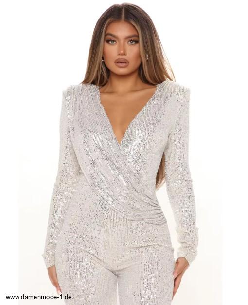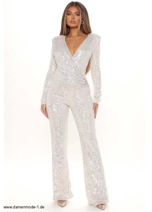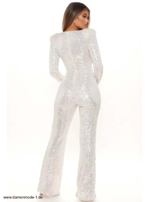 Einführung » Neuheiten 2025 » Glitzer Bodycon Jumpsuit Einteiler Esmeralda in Weiß