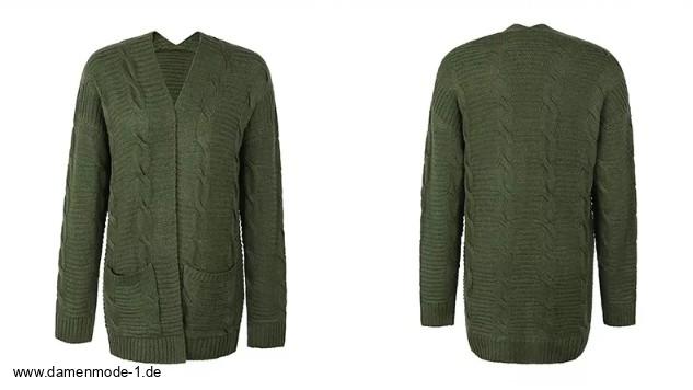 Einführung » Neuheiten 2025 » Kurze Damen Strickjacke Cardigan Eyvette mit Taschen Dunkelgrün
