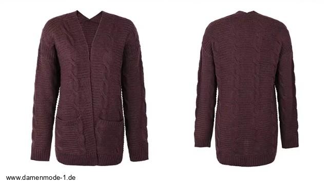 Kurze Damen Strickjacke Cardigan Eyvette mit Taschen Dunkelrot