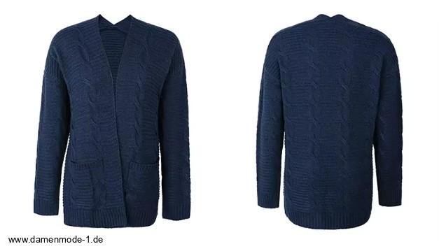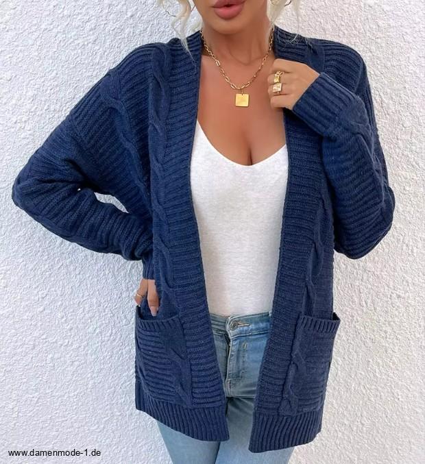 Einführung » Neuheiten 2025 » Kurze Damen Strickjacke Cardigan Eyvette mit Taschen Navy Blau