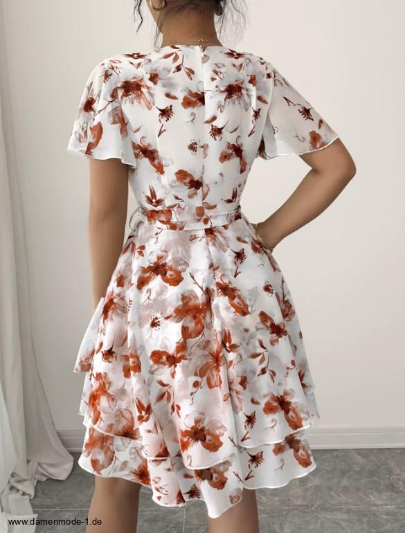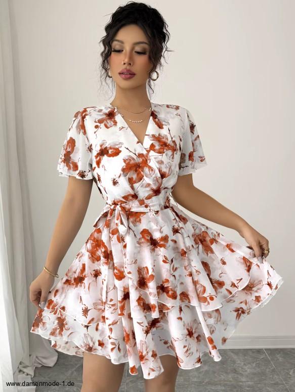 Einführung » Neuheiten 2026 » Kurzes Chiffon Sommerkleid Ganya Weiß Rot mit Blumenmuster