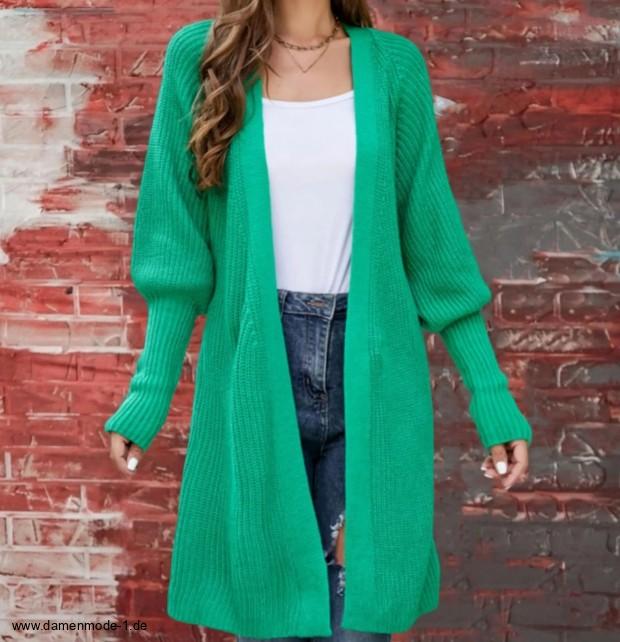 Einführung » Neuheiten 2025 » Langarm Damen Strickjacke Eike zum Binden in Grün