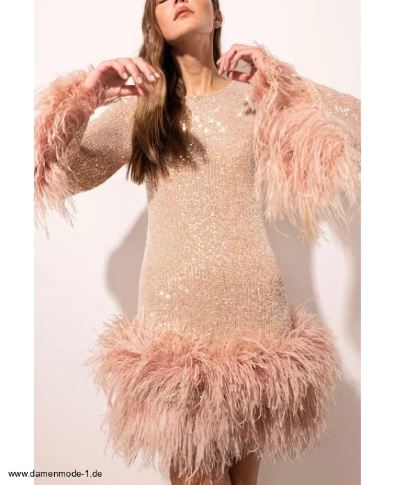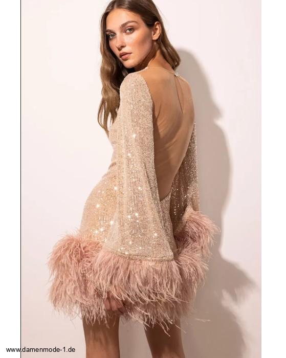 Langarm Glitzer Mini Cocktailkleid mit Sexy Rückenausschnitt Champagne