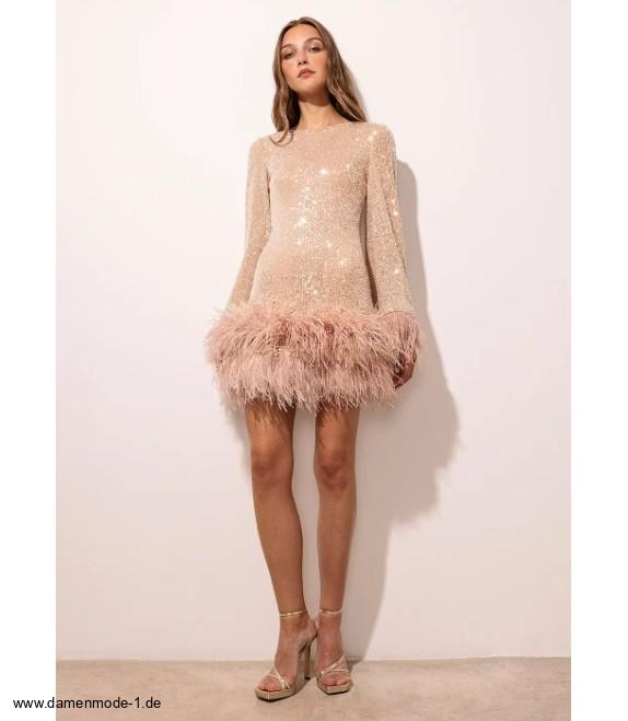 Einführung » Neuheiten 2025 » Langarm Glitzer Mini Cocktailkleid mit Sexy Rückenausschnitt Champagne
