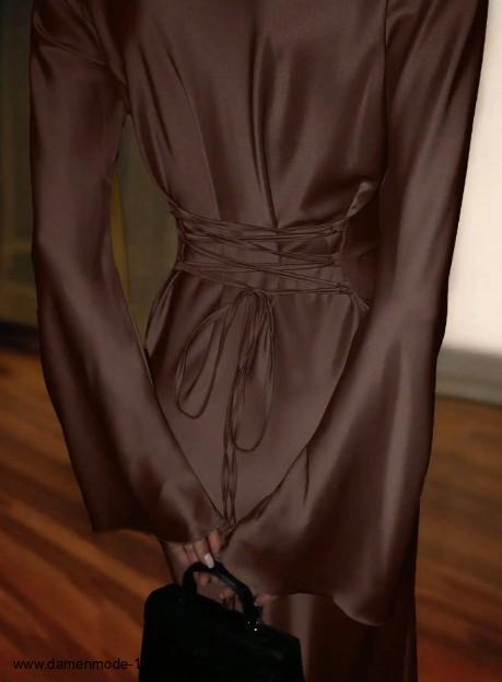 Einführung » Neuheiten 2026 » Langarm Satin Maxikleid Friederieke Elegant in Braun