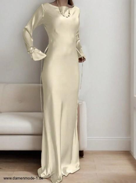 Langarm Satin Maxikleid Friederieke Elegant in Elfenbein