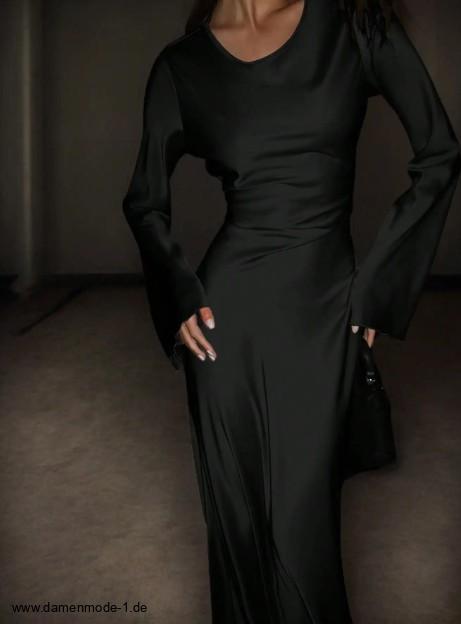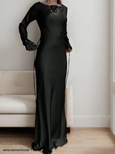 Einführung » Neuheiten 2026 » Langarm Satin Maxikleid Friederieke Elegant in Schwarz