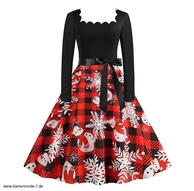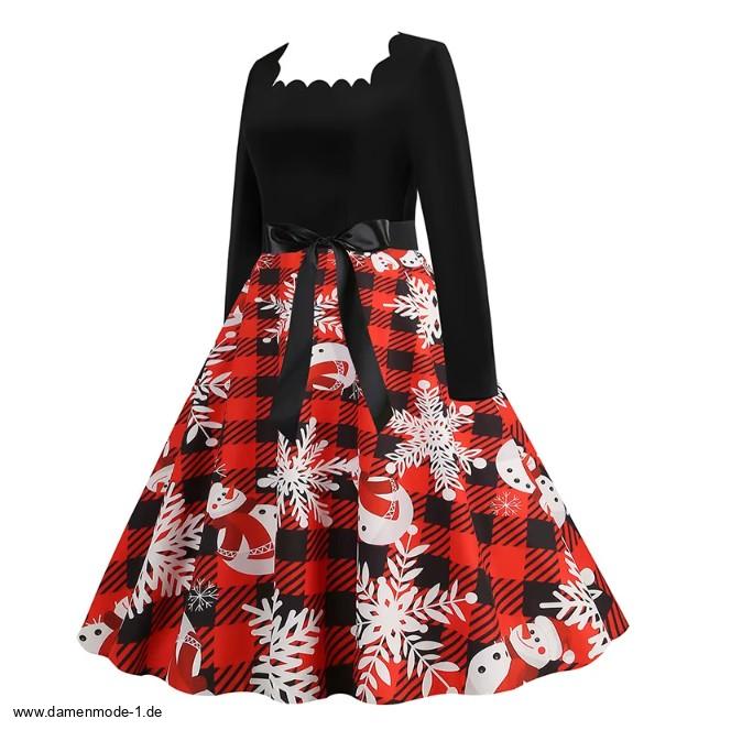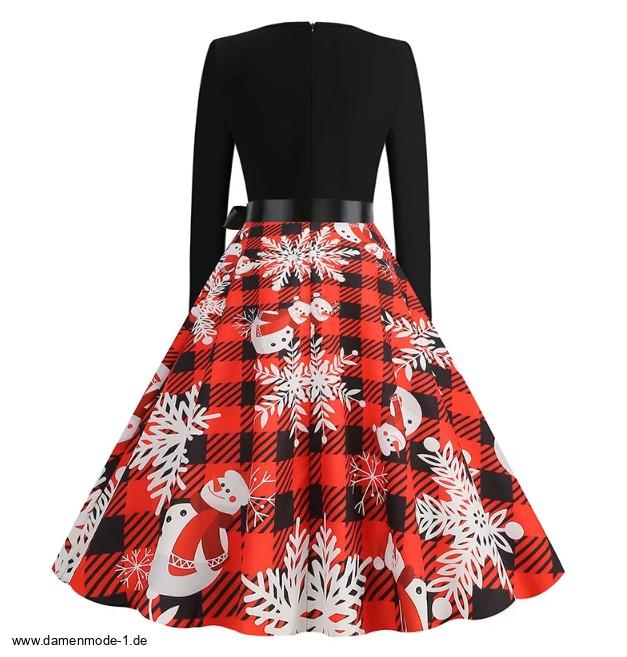 Langarm Vintage-Weihnachtskleid Enna Schwarz Rot mit Motive