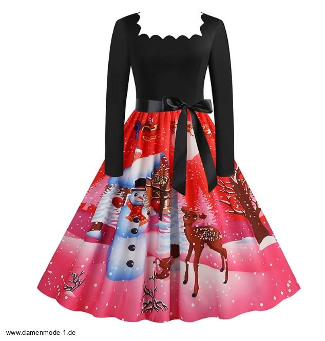 Langarm Vintage-Weihnachtskleid Felizitas Schwarz Rot mit Motive