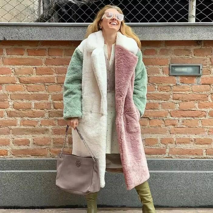 Einführung » Neuheiten 2026 » Langer Plüsch Damen Mantel Dreifarbig