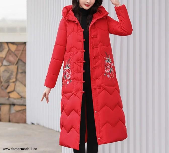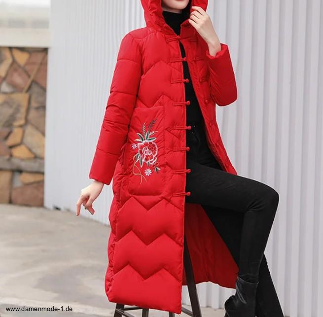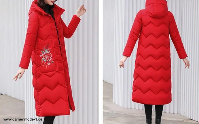 Neue Winterkollektion - Damenmantel Gesteppt Lang in Rot