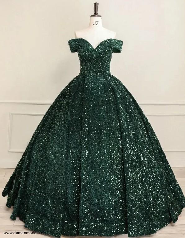 Schulterfreies Glitzer Ballkleid Eluana in Dunkelgrün