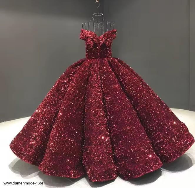 Schulterfreies Glitzer Ballkleid Eluana in Dunkelrot
