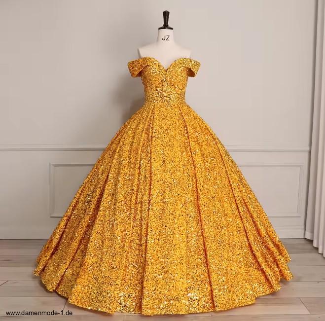 Schulterfreies Glitzer Ballkleid Eluana in Gold